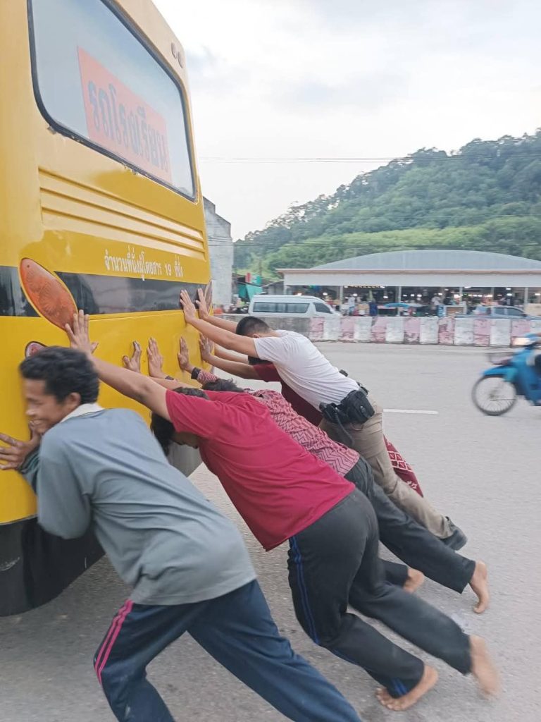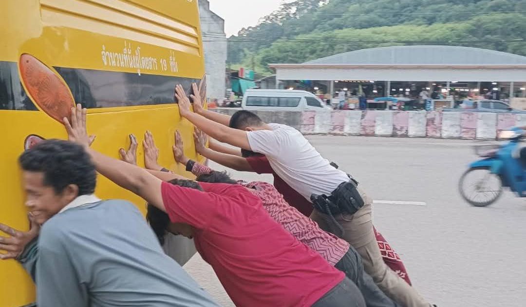 สภ.สุขสำราญ ระหว่างออกตรวจพื้นที่ในเขตรับผิดชอบ พบรถรับ-ส่งนักเรียน จอดเสียอยู่ บริเวณ ตรงข้ามเซเว่นฯ สาขากำพวน ม.3 ต.กำพวน อ.สุขสำราญ จ.ระนอง เจ้าหน้าที่ตำรวจฯจึงได้เข้าไปสอบถามและตรวจสอบเบื้องต้นพบว่า แบตเตอรี่เสื่อม สตาร์ทไม่ติด เจ้าหน้าที่ตำรวจพร้อมด้วยพลเมืองดี จึงให้การช่วยเหลือโดยการเข็นรถฯพร้อมอำนวยความสะดวกจราจรไปยังร้านซ่อมที่อยู่ไม่ไกลเพื่อตรวจเช็คแบตเตอรี่และสามารถเดินทางต่อไปได้